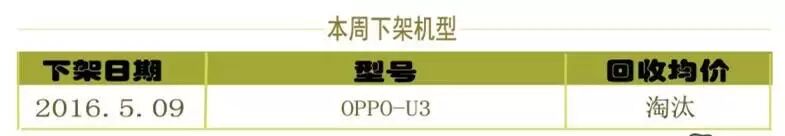 本周下架机型与上周出现明显的差距,只有一款OPPO U3。大家赶紧有手机的快回收。